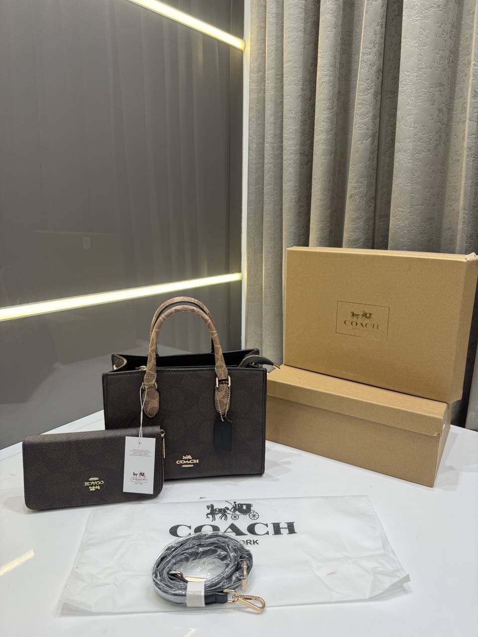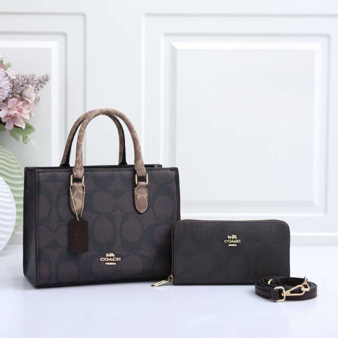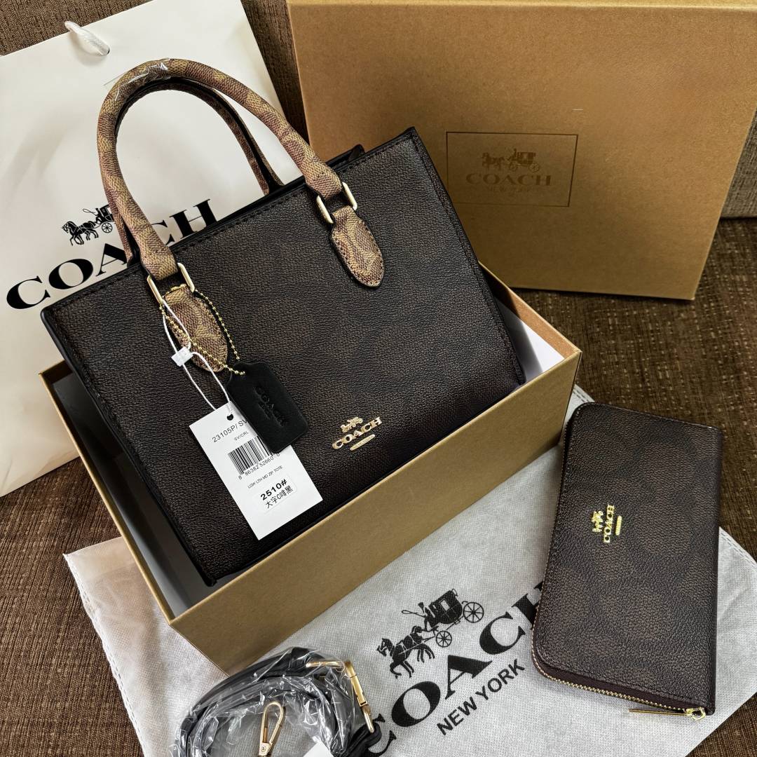 COAC.H MAGGIE BROWN TOTE SIGNATURE CANVAS WITH EXTRA WALLET PREMIUM WITH OG BOX